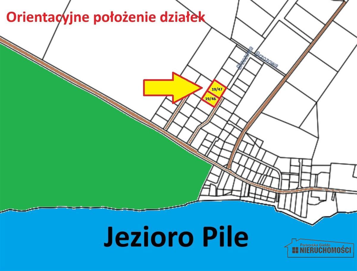 Działka położona w miejscowości letniskowej, ok. 260 m od malowniczego 1000 ha Jeziora Pile, na skraju wsi, w kompleksie działek budowlanych.