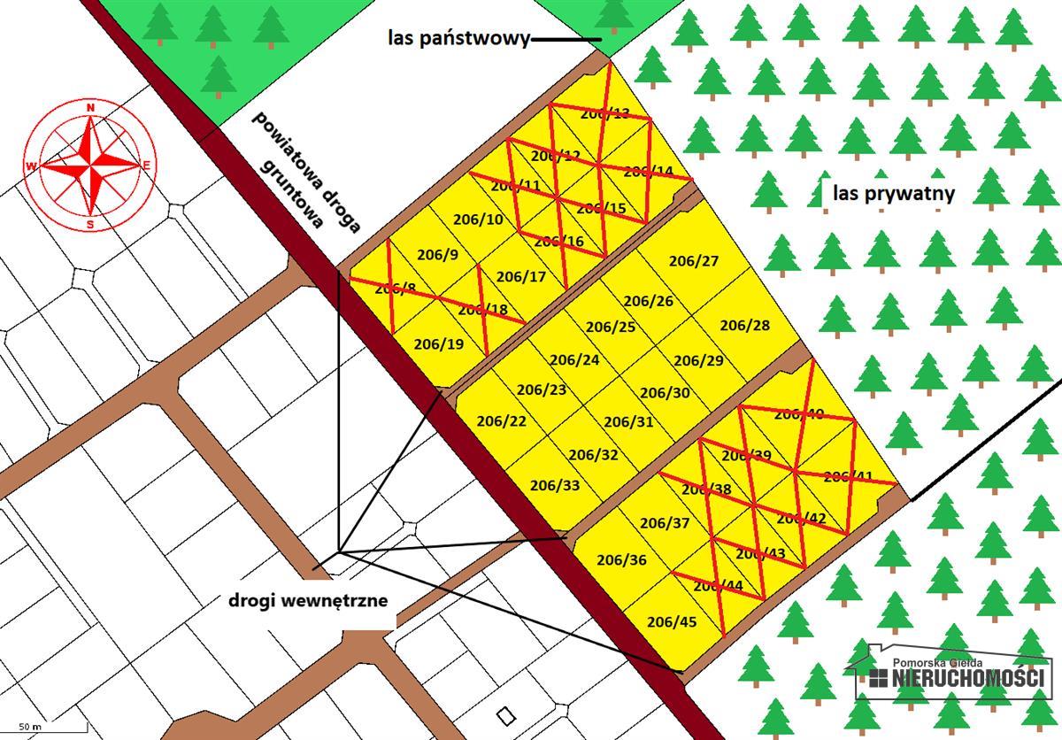 - 206/43, pow. 886 m2, wymiary: ok 37m x 24m, cena 50 000 zł - REZERWACJA;