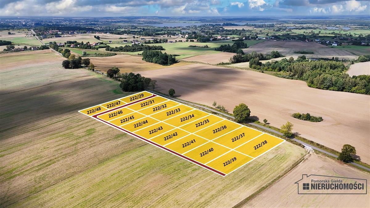 - działka nr 222/47, pow. 708 m2, grunty orne RIVa, ok. 23m x 31m, cena 77 900 zł - cena z rabatem 20% - 62 320 zł;
